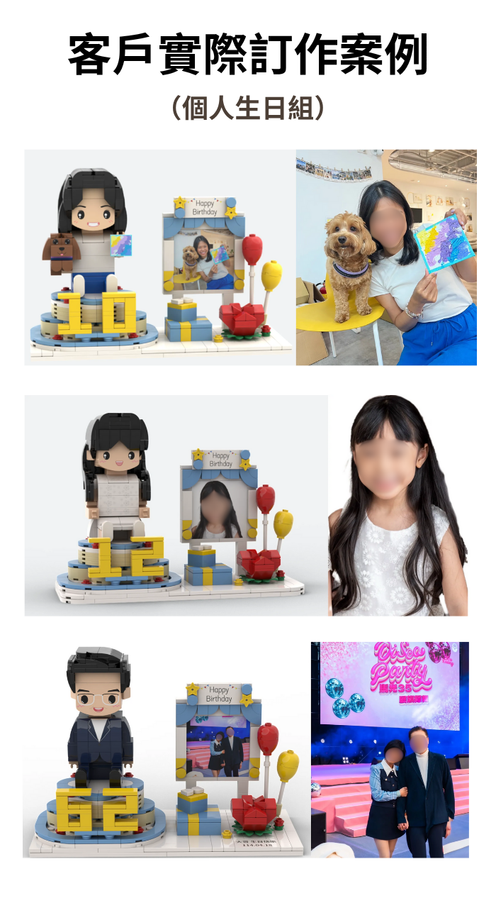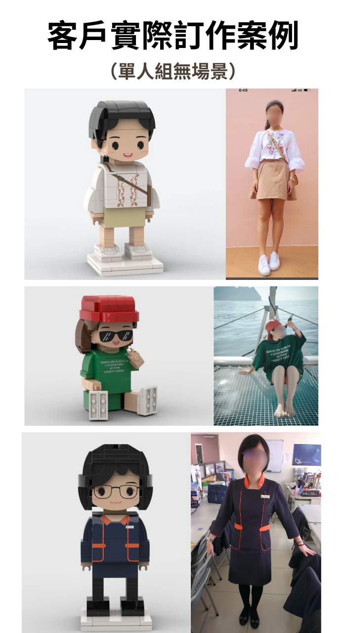 若您想 客製化專屬積木設計(如建築物、動物、人物、器具等),最低訂製量為 100組起。