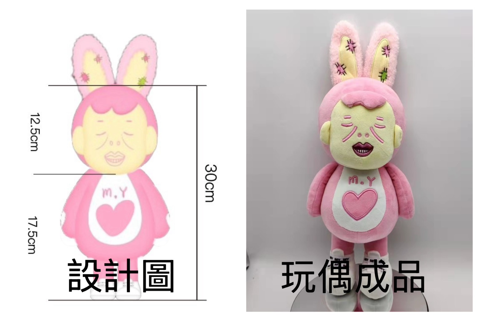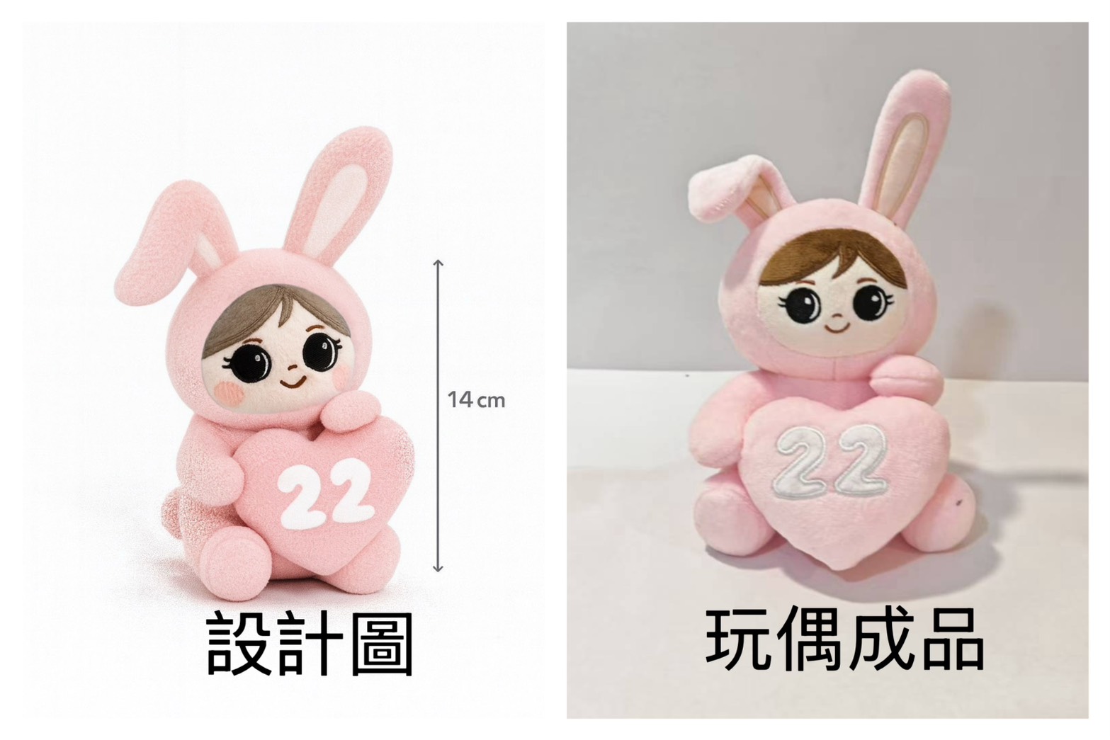 由於非機器量產,每一隻玩偶在表情、縫線位置、比例上,可能會與樣品或照片存在輕微個體差異,整體風格與品質仍會維持一致。