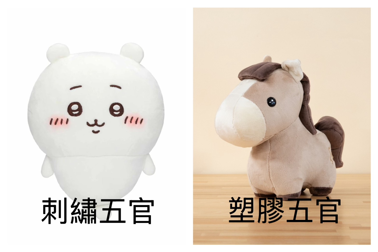 不同玩偶之間可能會出現軟硬度、飽滿度的細微不同,不影響外型完整與正常擺放、使用。也可捏一捏再塑形,因為玩偶版型是一樣的,如果出現頭形狀不一樣,只是裡面的棉花跑位,可以再手捏復位。