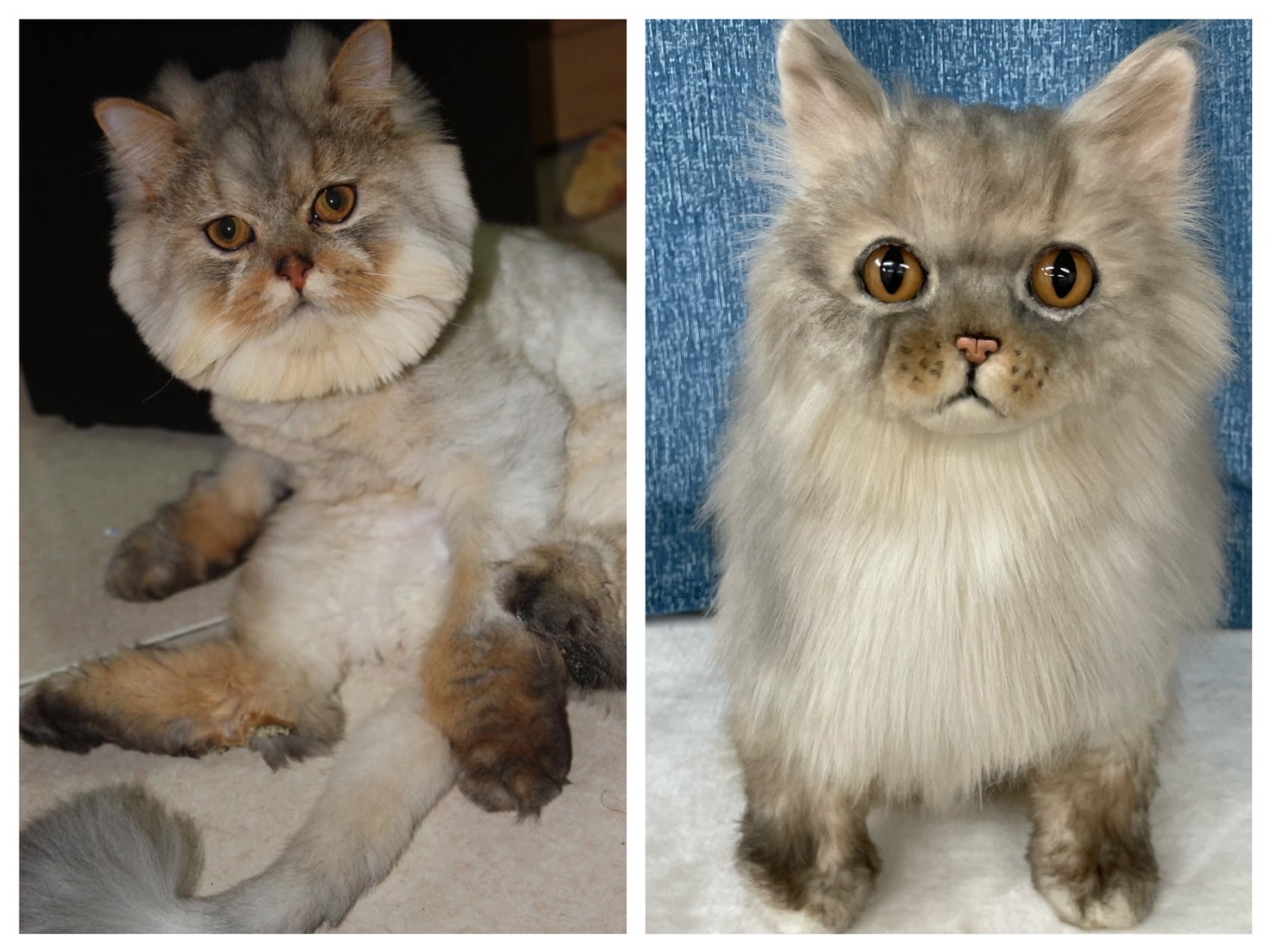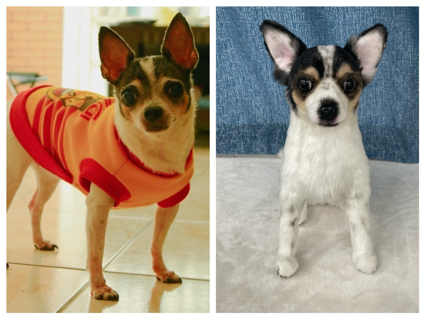 每一件作品都是手工製造,送給任何寵物愛好者的完美禮物,收到的那一刻,往往伴隨的都是滿滿的感動,依照圖片討論寵物的細節和獨特特徵,可以接近真實比例,我們一般是用鼻尖到屁股來算尺寸,小型犬可以做30~42cm內的、大型犬是鼻尖到屁股50~60cm,在這樣的比例內會最好看,因為做寵物五官的材料,有一定的大小,如果超出這個範圍,比例會比較怪。
